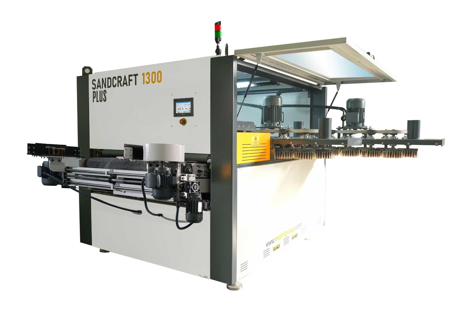 SANDCRAFT 1300 PLUS Fırça zımpara makinesi, en zorlu ham ve astar yüzeyler için tasarlanmış ve geliştirilmiştir. SANDCRAFT 1300 PLUS fırça zımpara makinesi muadil makinelerden farklı olarak 6 Ünite ve Kenar zımpara ünitesinden oluşmaktadır. Ham ve astarlı rustik, oyulmuş, ve fugalı, çıtalı mobilya zımpara, kapak zımpara, kapı zımpara SANDCRAFT 1300 PLUS ahşap zımpara makinesiyle çok kolaydır.