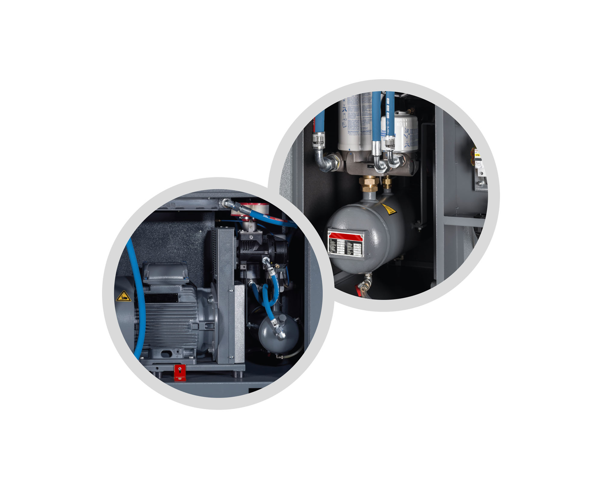 • Dayanıklı, yüksek kapasitede hava sağlayan, her modelin kapasite ihtiyacına göre özel seçilen vida bloğu